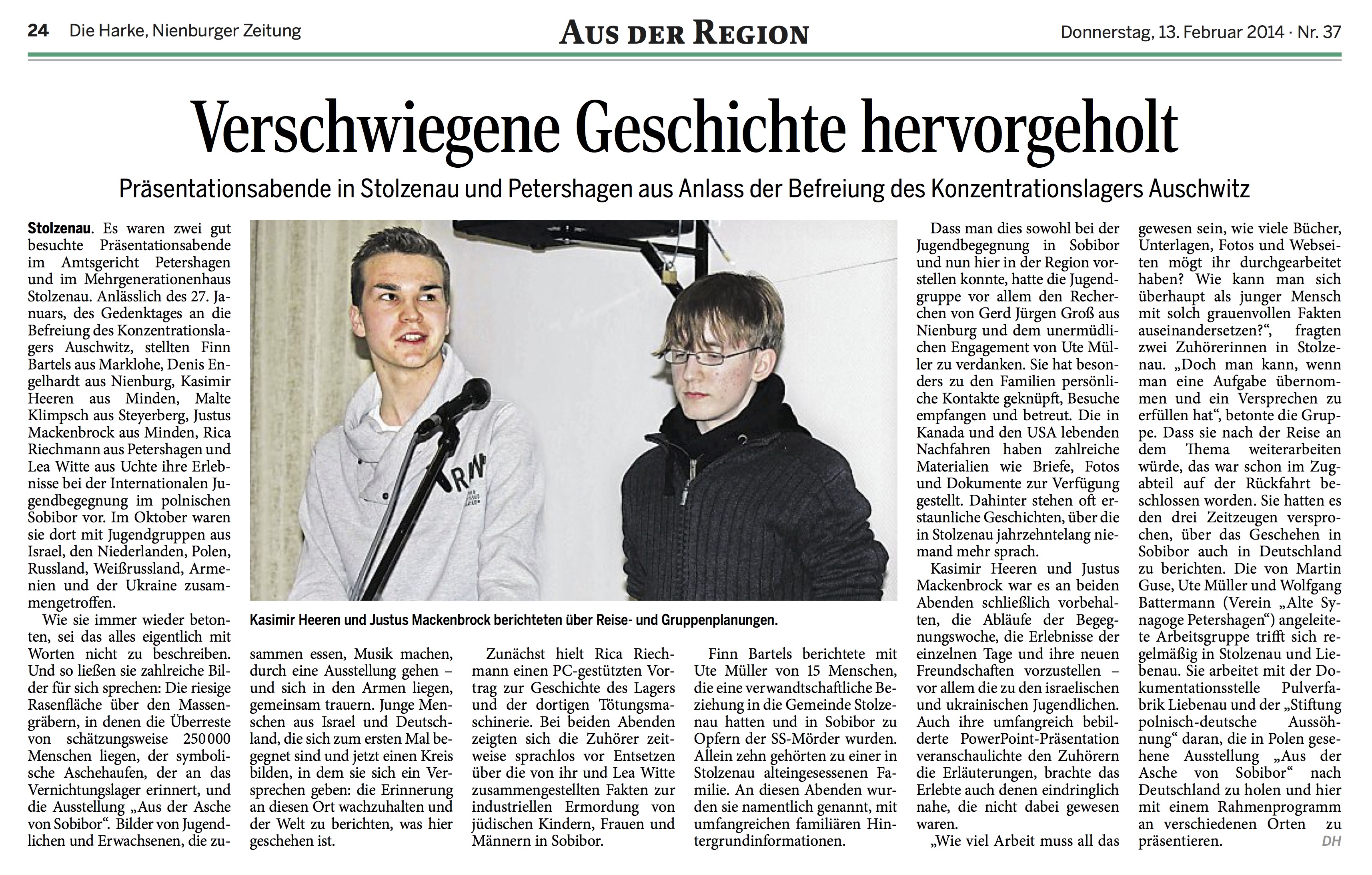Die „Sobibor AG“, in der Jugendliche und Erwachsene aus Reihen der Dokumentationsstelle Pulverfabrik Liebenau, der Arbeitsgemeinschaft Alte Synagoge Petershagen und dem Haus der Generationen in Stolzenau zusammenarbeiten, bietet am
